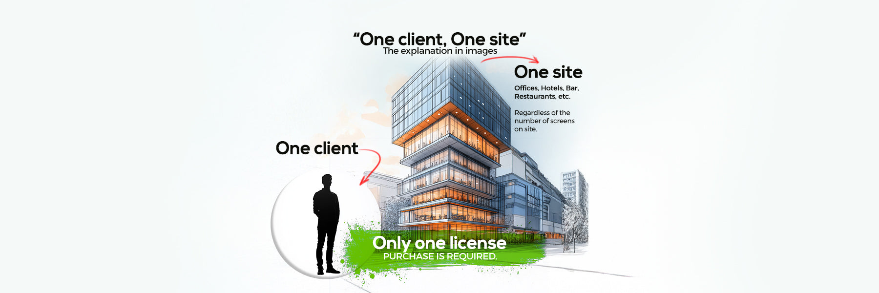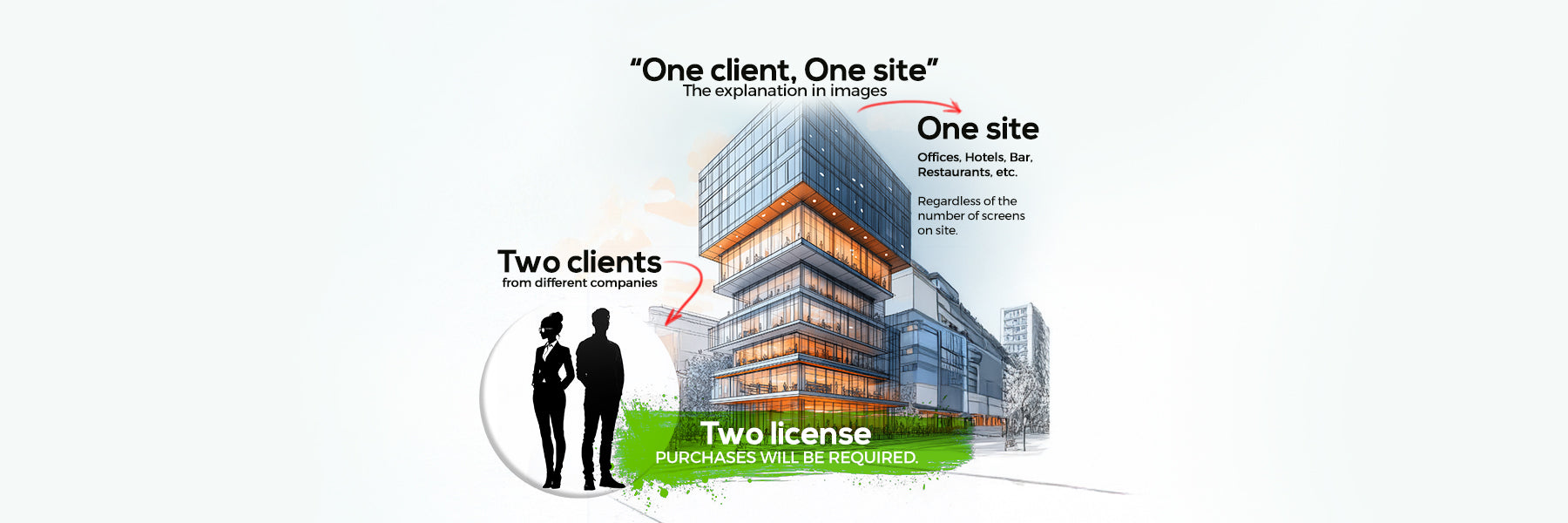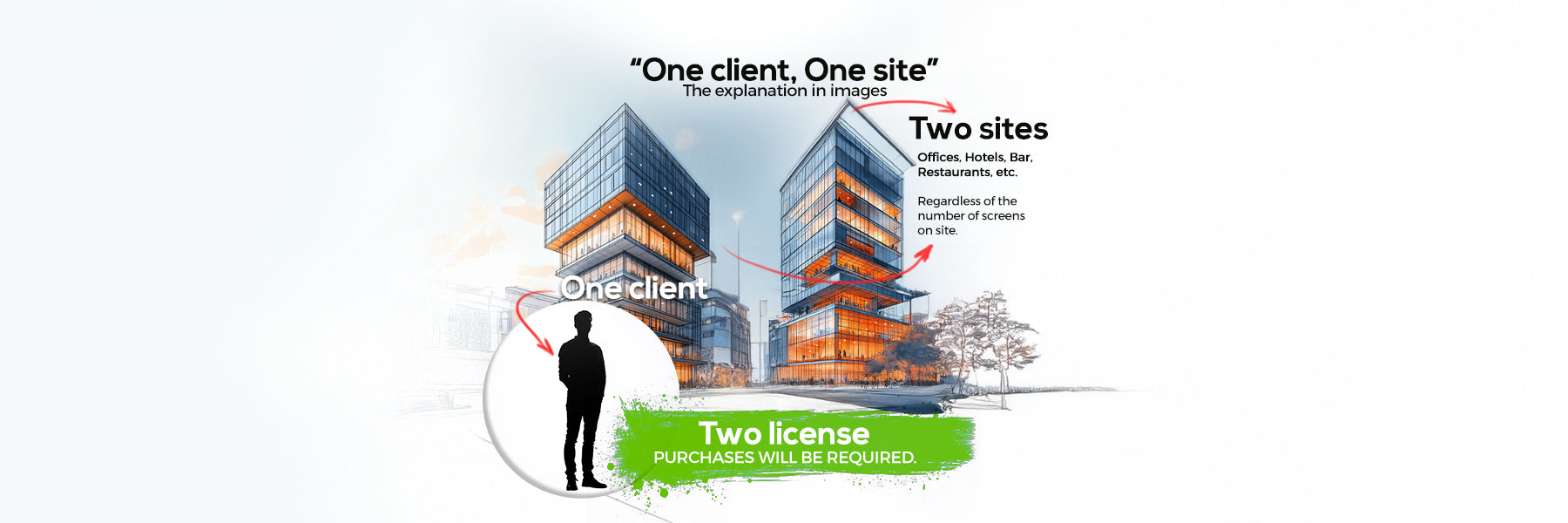The fundamental rule for using our videos is one client, one site. If a client has multiple screens at a single location (e.g., a hotel with 50 screens), only one purchase is required for that site. However, if the client has multiple physical sites, a separate purchase must be made for each site. - Commitment to Best Practices